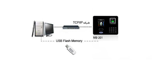 علاوه بر ارتباط آنلاین از طریق پورت شبکه، امکان انتقال داده های تردد از طریق USB Flash Memory میسر می باشد.